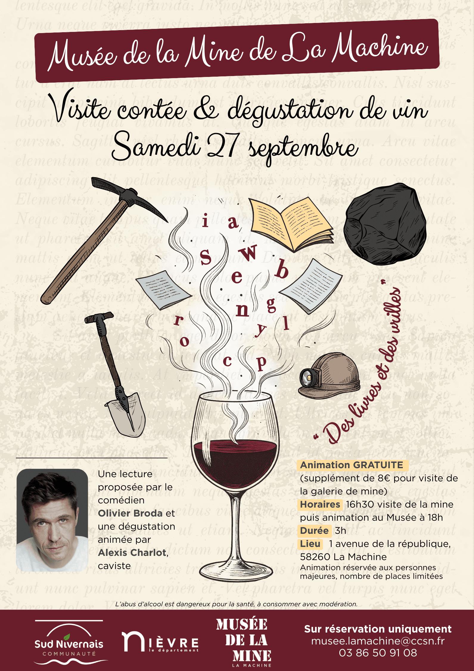 Le musée vous propose une expérience originale : une rencontre entre les mots et le vin, animée par le comédien Olivier Broda et le caviste-dégustateur Alexis Charlot.